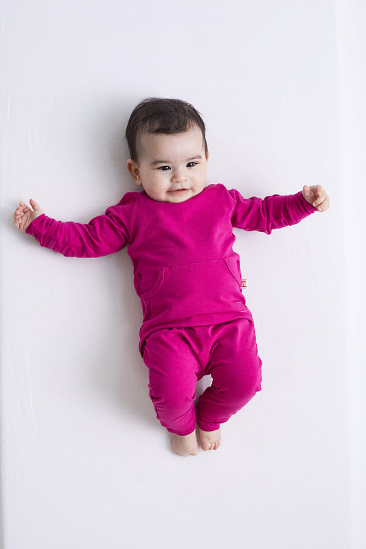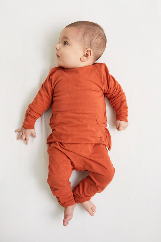 Our outfits are made of a beautiful bamboo fabric which makes it super stretchy and luxuriously soft with a feeling like cashmere on your little one's skin.